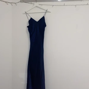 Mörkblå balklänning - Säljer denna jättefina mörkblåa balklänningen med öppen rygg. Den går hela vägen ner till golvet för mig som är 167cm lång. Jag hade den på 9:ans bal och är därför använd en gång. Jag köpte den för 1400kr💞🤗
