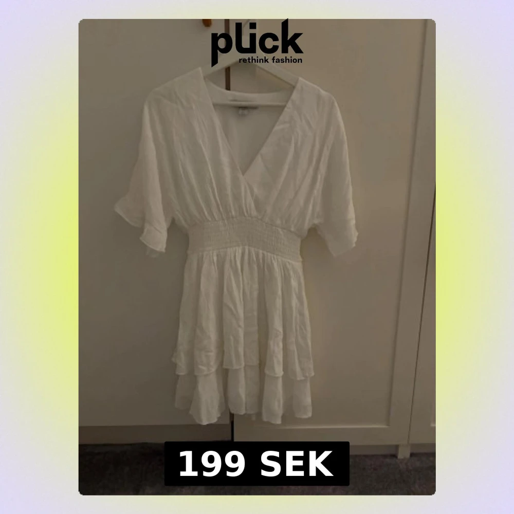 Säljer en vit kortklänning från Amisu i storlek 32 som är köpt från New Yorker. Klänningen har v-ringad hals, korta volangärmar och är lite tajtare i midjan. Tyget är ganska tunt och luftigt, perfekt till sommaren. Är endast använd en gång.