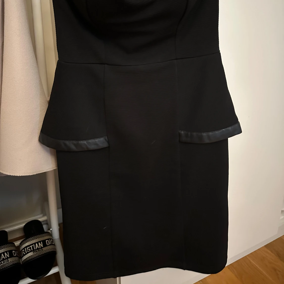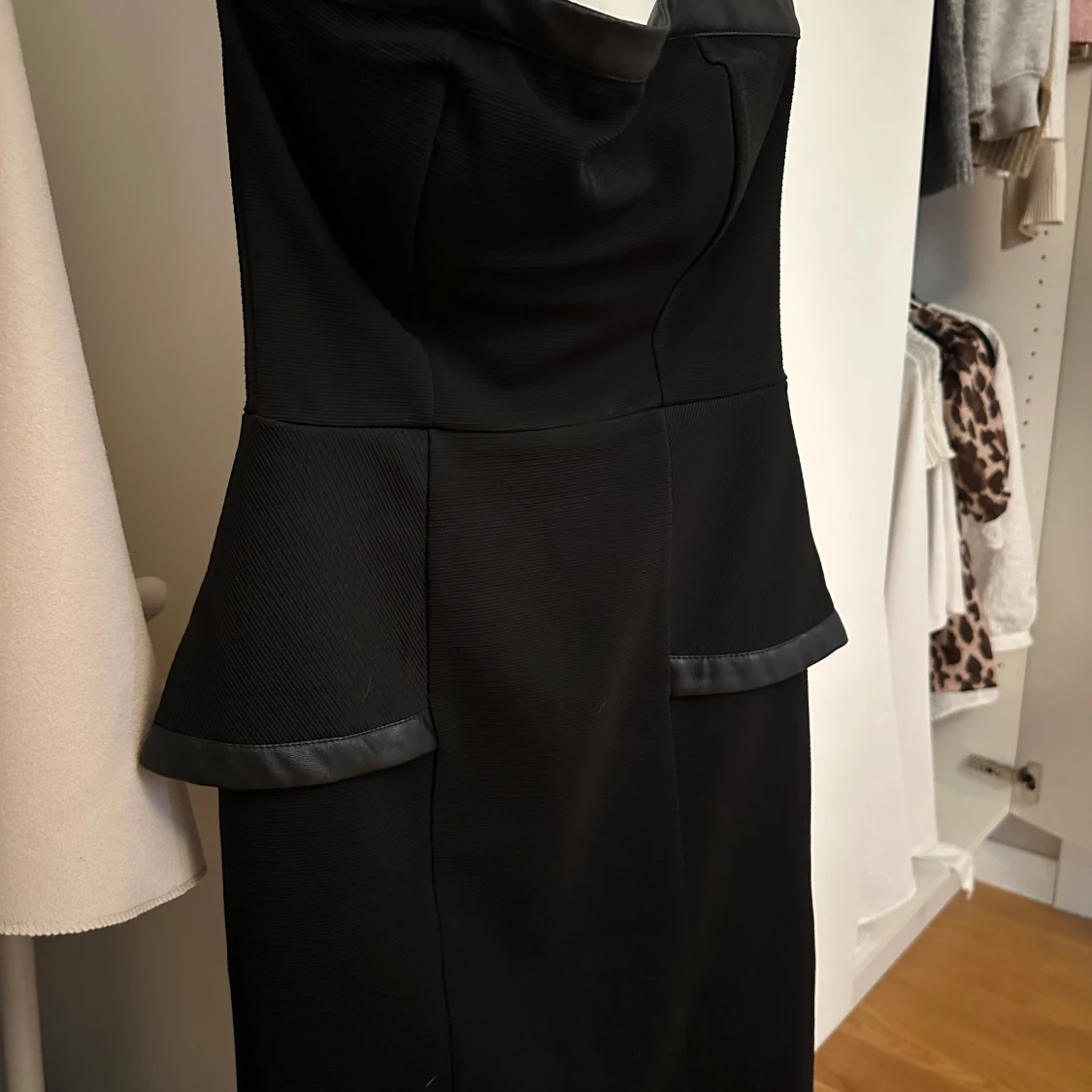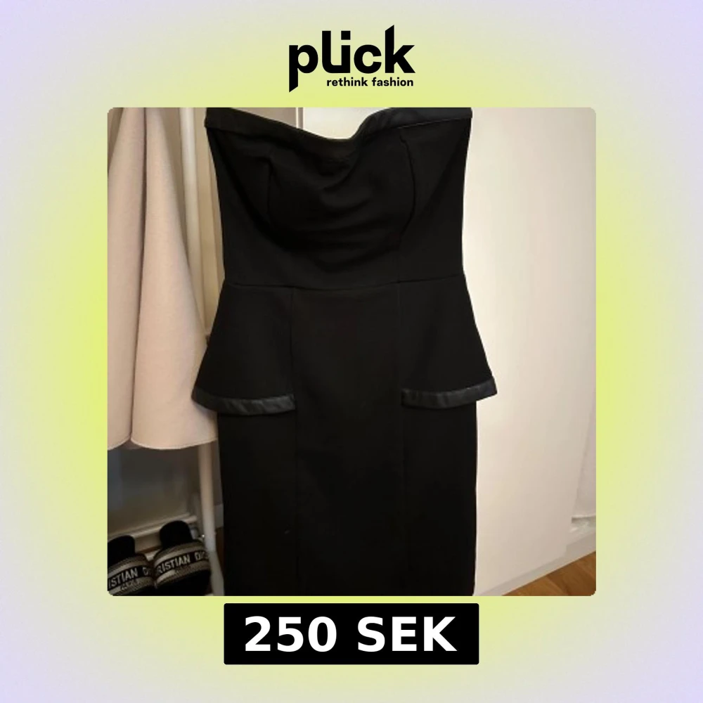 Snygg svart axelbandslös klänning, har inbyggda inlägg vid brösten💕