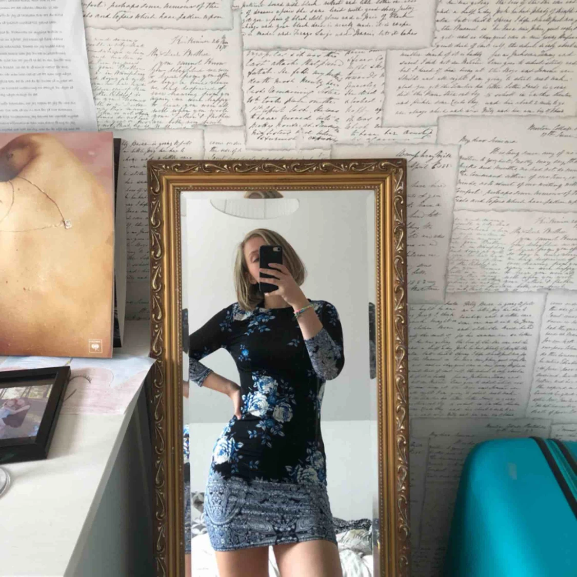 En av mina finaste klänningar❤️ Den är stretchig och i ett glansigt material vilket gör att den sitter som en smäck och är riktigt bekväm. Kommer från Atmosphere och mönsterna på den är verkligen så fina.