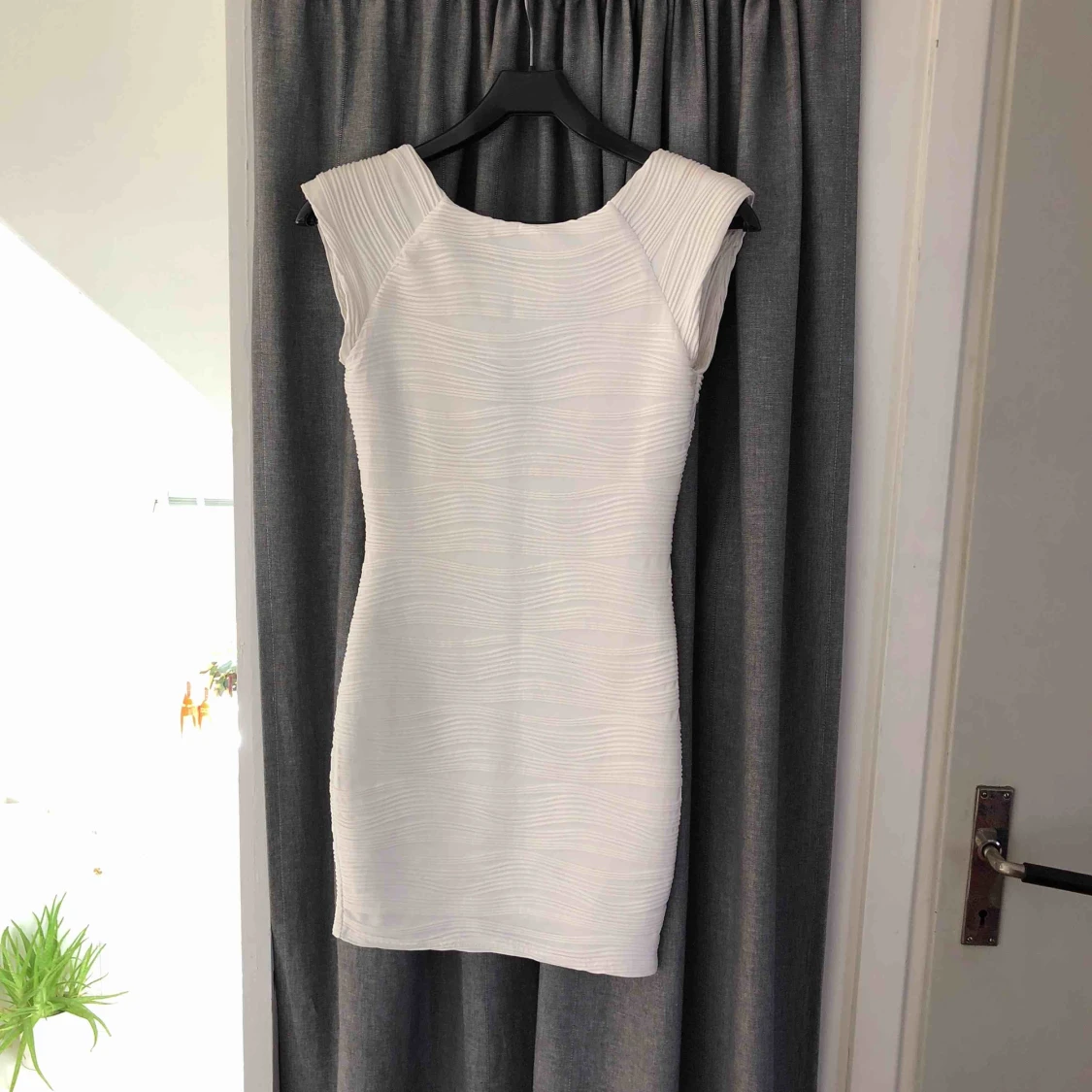 Jättefin vit klänning med räfflat tyg, aldrig använd. Perfekt examensklänning