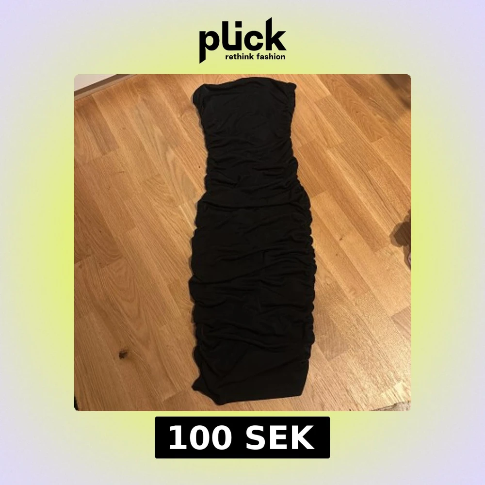 Supersnygg svart långklänning från Amisu med glittrigt tyg och figurnära passform. Klänningen är axelbandslös och har rynkade detaljer längs hela längden. Perfekt för dig som vill sticka ut med stil och passar för alla tillfällen🖤✨