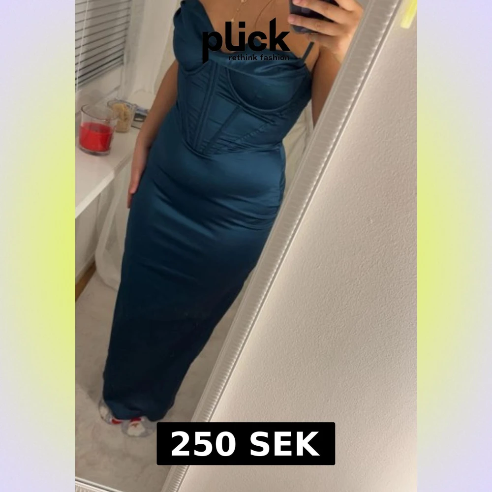 Supersnygg mörkblå långklänning med smala axelband, figurnära passform och markerad byst. Klänningen har en slits där bak och en lätt glansig yta som ger en lyxig känsla. Perfekt för dig som vill sticka ut med en elegant och modern look.