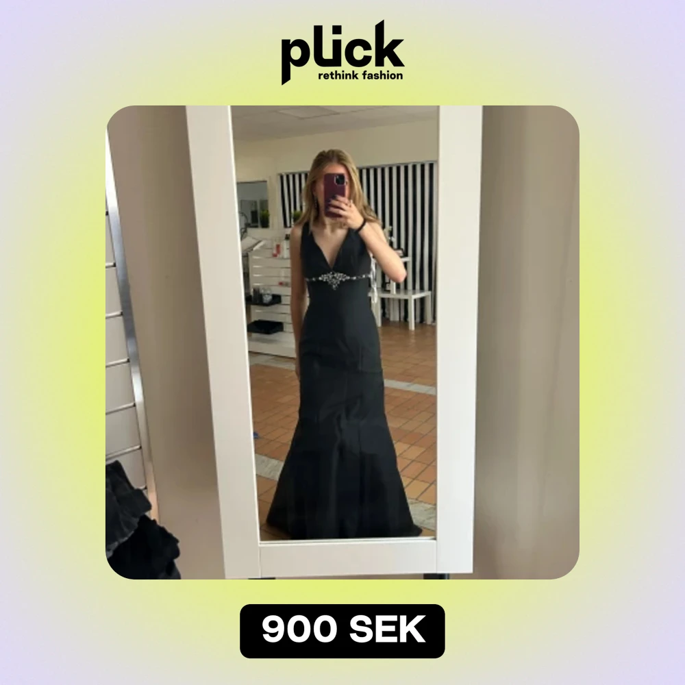 unik svart balklänning med fin v-ringning och paljetter vid bysten🩷🩷storlek 34 men passar även 36. Lappen kvar