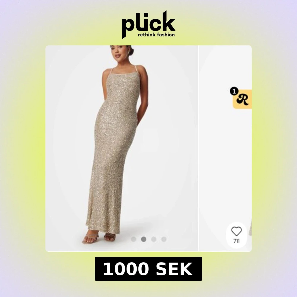 Guld glittrig balklänning i storlek S från bubbelroom.