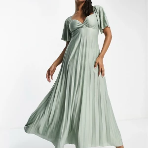 Helt OANVÄND plisserad mintgrön klänning som är mycket ljusare i verkligeheten. Klänningen är hellång och passar mig som är 170 cm.