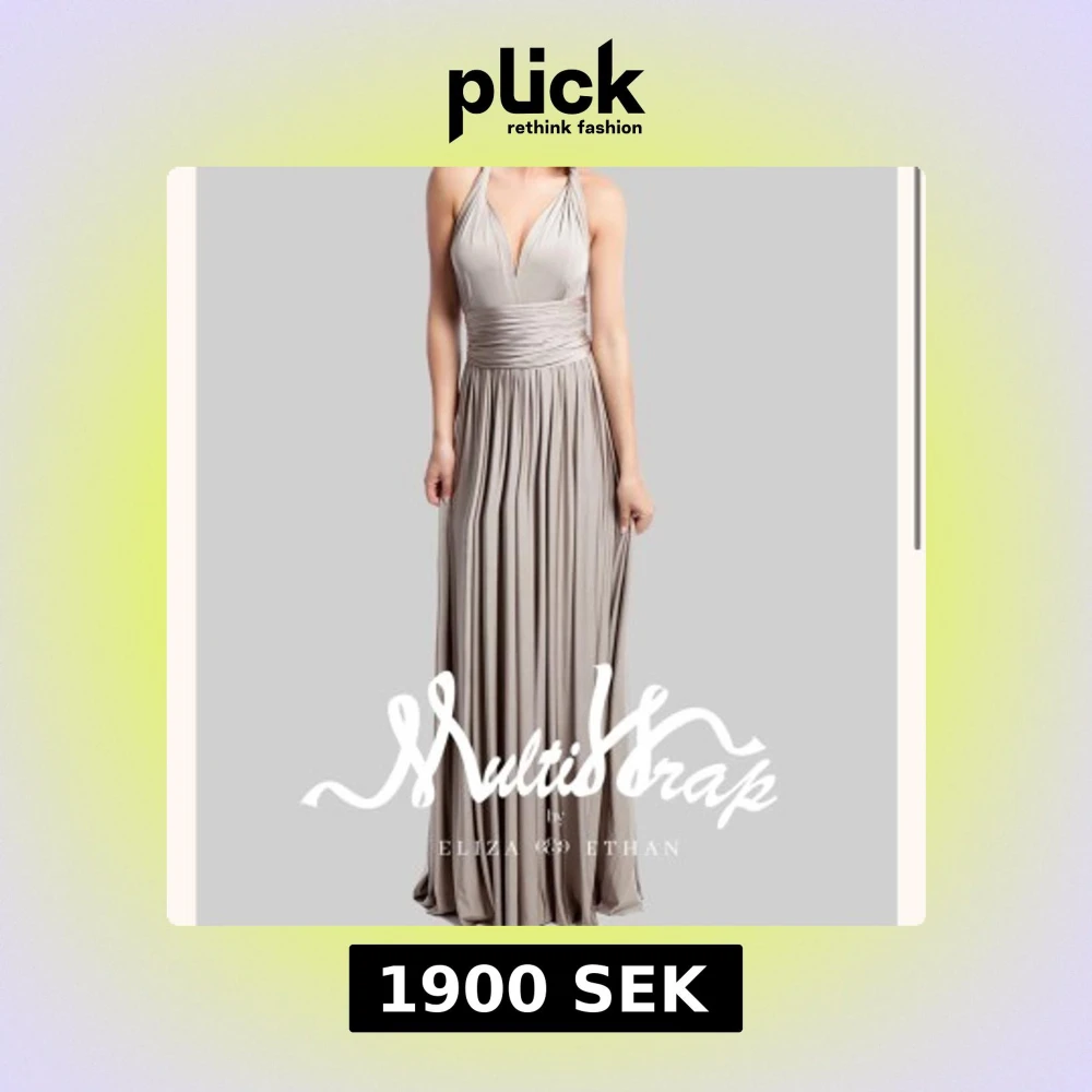 Så fin klänning från det fina märket Eliza & Ethan. Klänningen är en multiwrap klänning som går att knyta på hur många olika sätt som helst! Färgen är i Champange (första bilden). De andra bilderna visar lite olika sätt man kan knyta den på!😊 Köpt för 2500 och den är aldrig använd, lapparna kvar! Finns många bilder på nätet som visar olika sätt att knyta den på.