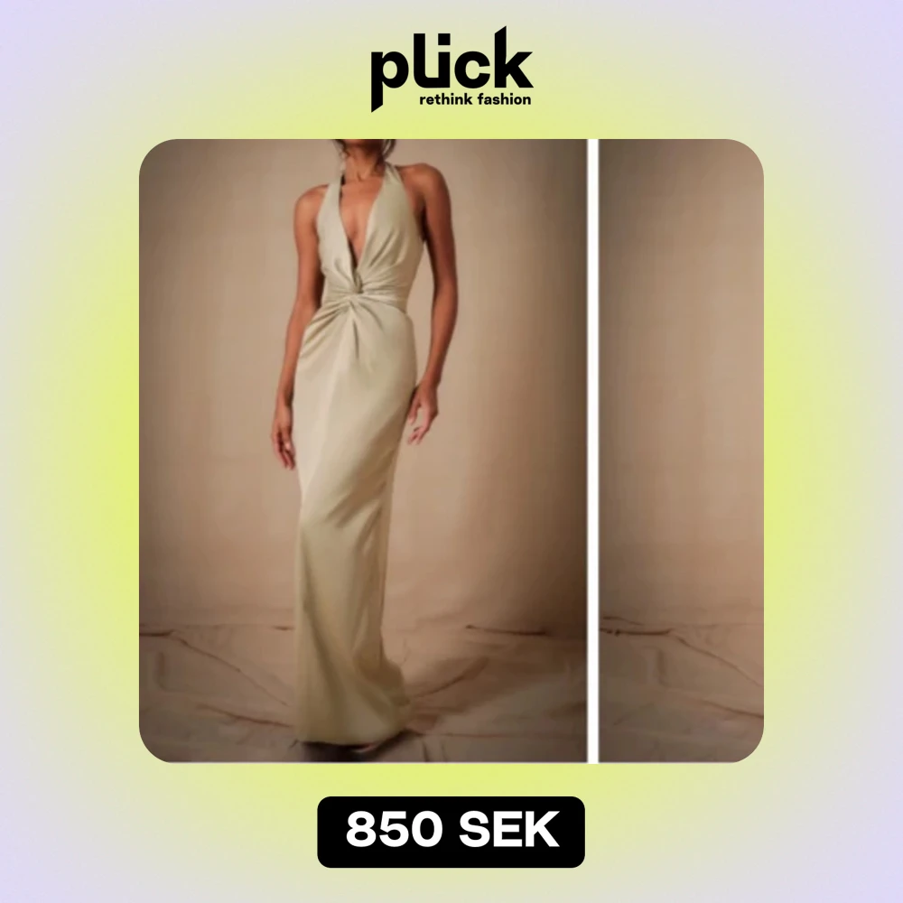 Säljer denna helt nya oanvända super fina balklänningen. Den är i satin i färgen sage (lite mörk champagne färg). Går ända ner till marken på mig som är 168cm lång. Passar både 34 och 36/ xs och s. Köpt från Storbritannien. Nypris ca 900kr.