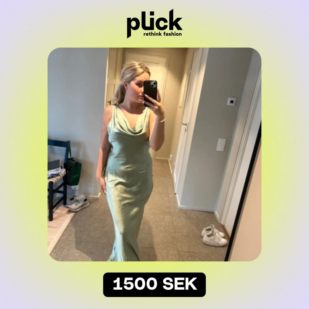 Glass grön klänning från showpoo. Aldrig använd prislapp är kvar. Säljer pga att jag köpte en annan. Köptes för 1600kr inklusive frakt