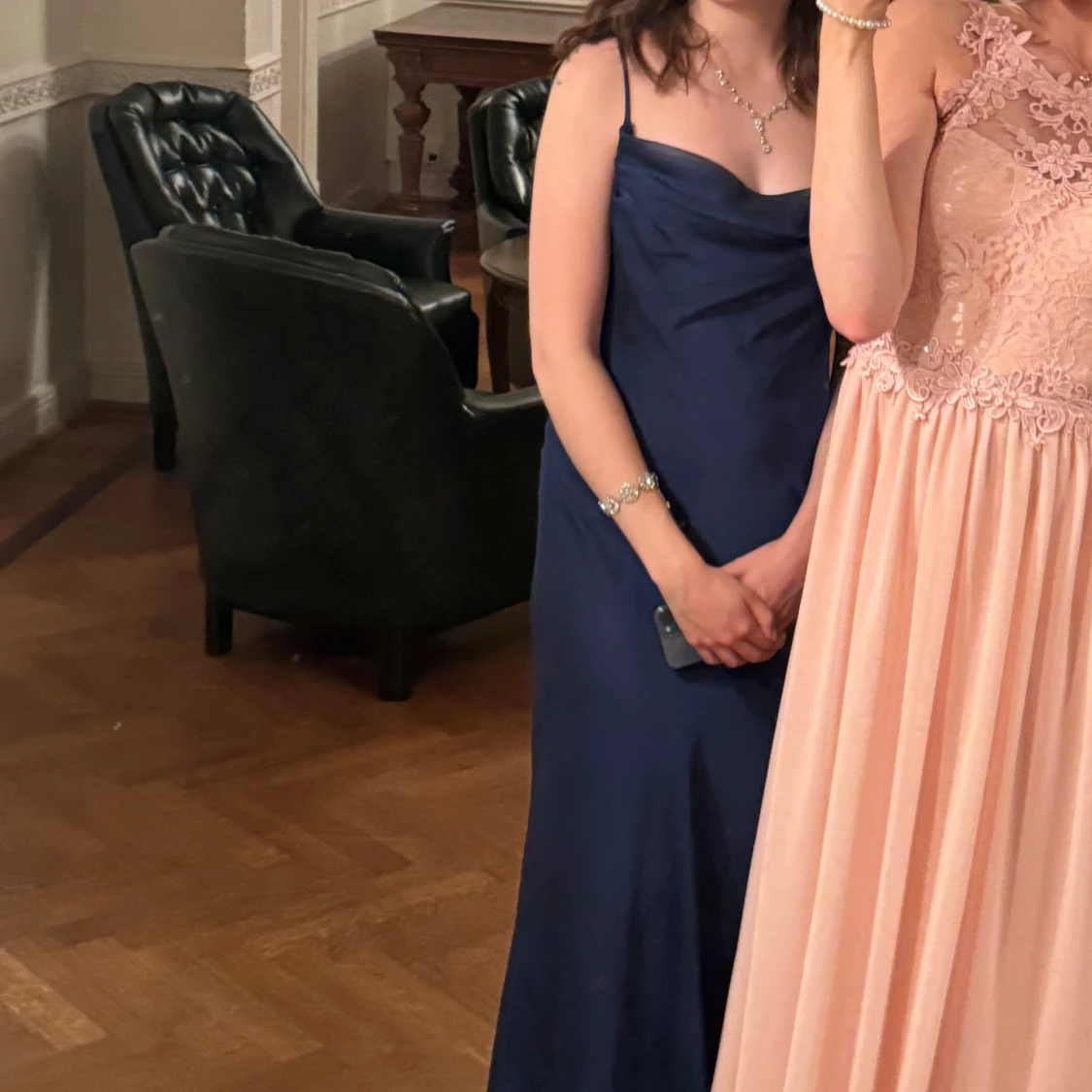 Super fin blå balklänning som är använd en gång! Köpt second hand men i nyskick. Lite för stor för mig men super fin ändå. Jag brukar ha xs/S o skulle säga att denna är mer M/L. Köpt för cirka 600 men pris går att diskutera🥰