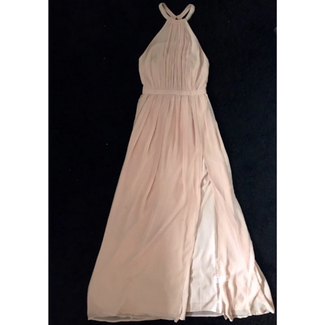 Ljusrosa långklänning med djup v-ringning - Supersnygg ljusrosa långklänning med djup v-ringning och halterneck. Klänningen har öppen rygg, så himlans fin!😍 Använd en gång under min bal❣️