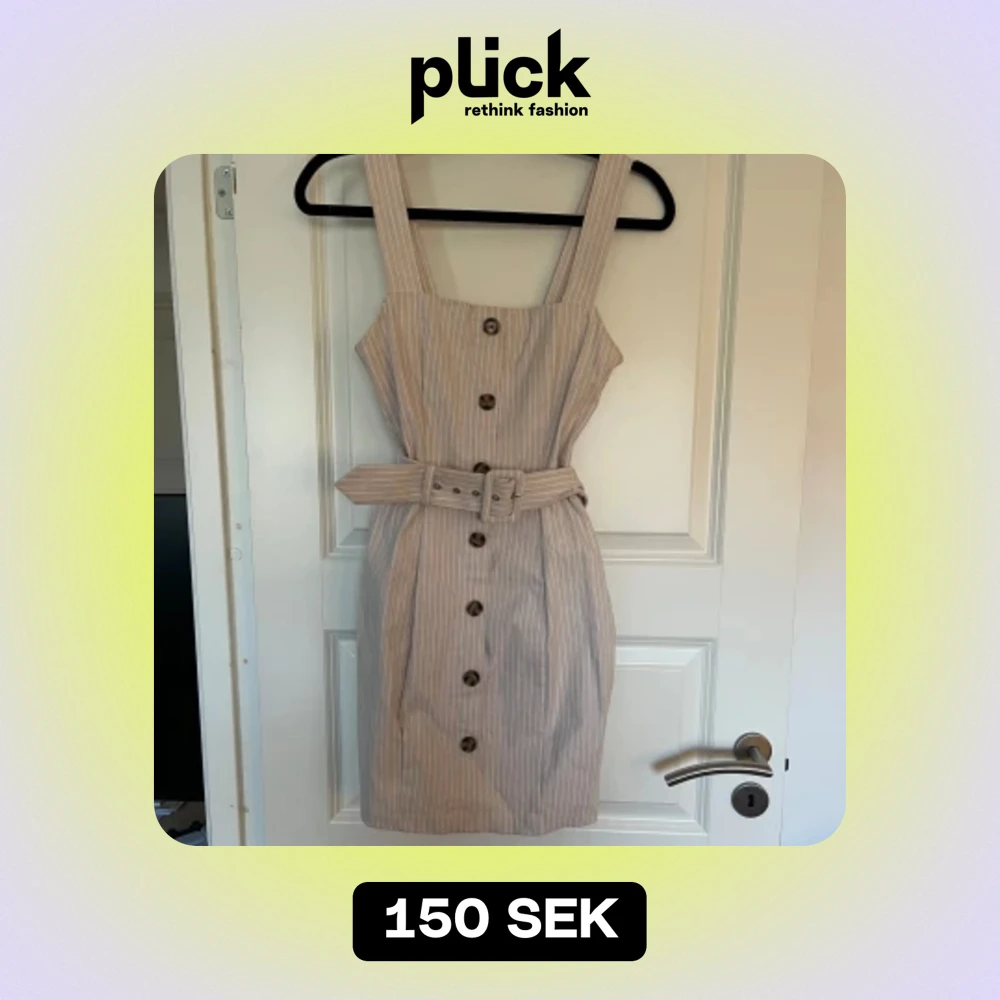 Rosa klänning med vita ränder, knappar & bälte. Aldrig använd. Köpt från Tally Weijl. Storlek S