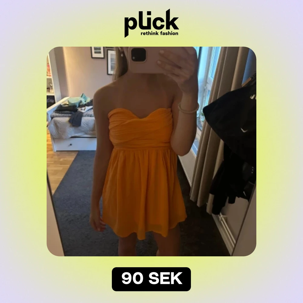 Söt orange bandeau klänning, säljer då den är för liten, storlek ca xs
