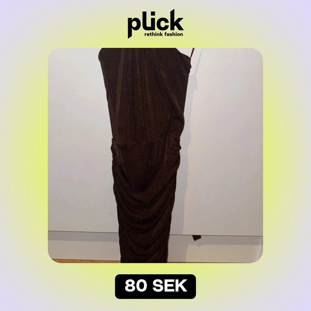 Snygg brun klänning med snörning i ryggen. Perfekt för festliga tillfällen! Klänningen har en draperad design som ger en elegant look. Materialet känns mjukt och bekvämt mot huden.