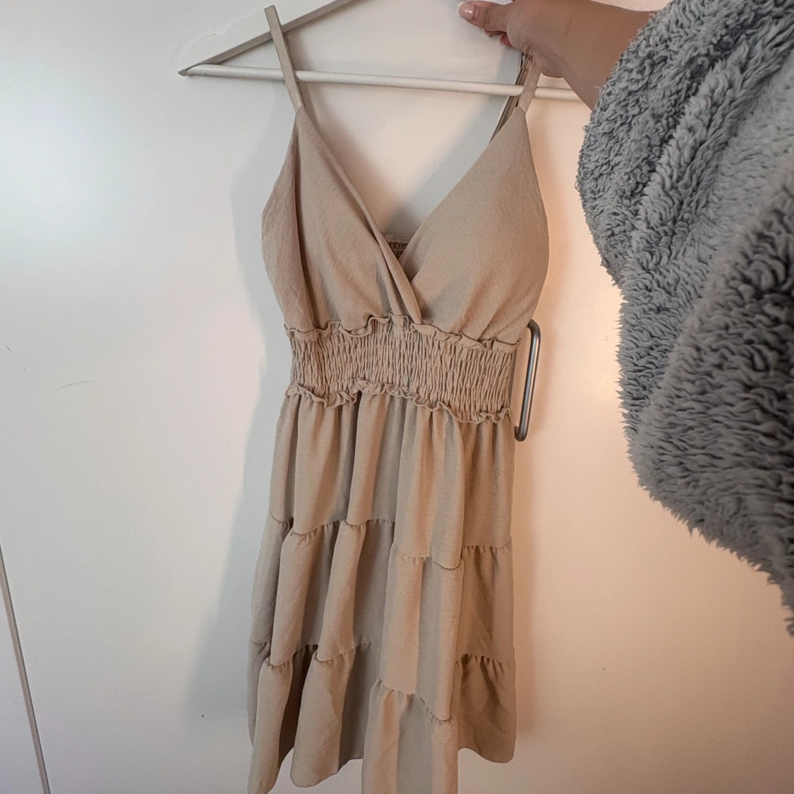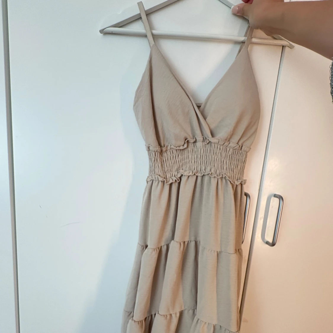 Jätte söt beige klänning köpt nyligen på en marknad på Teneriffa🌴 köpt för 40€ & säljs för 300kr. Älskar verkligen den men behöver rensa garderoben. Sitter väldigt fin, är stretchig och bekväm. Aldrig använd