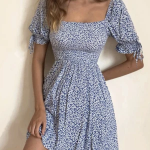 Blå blommig klänning
