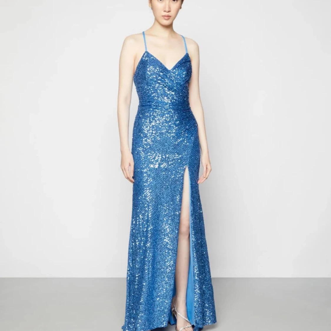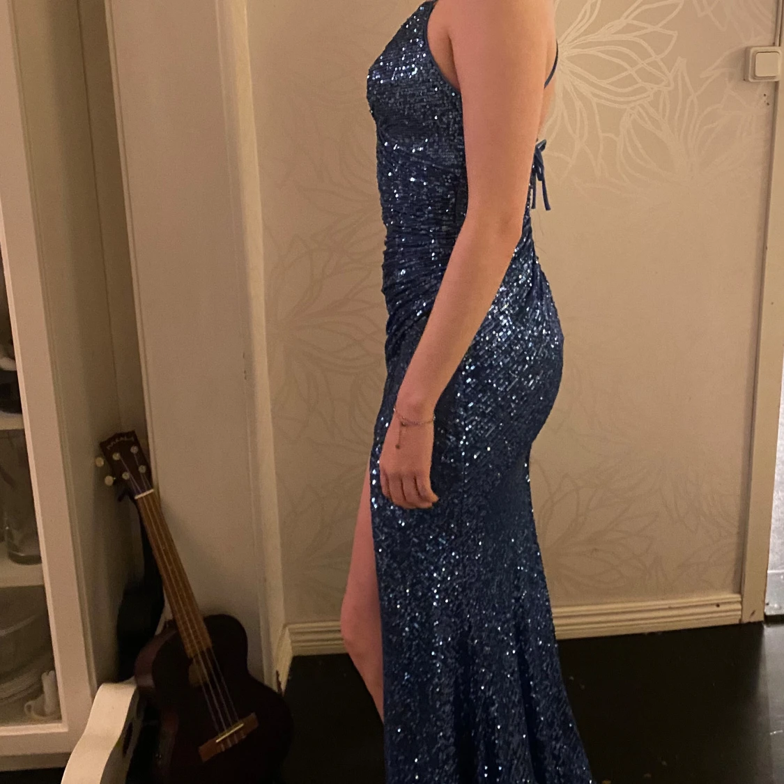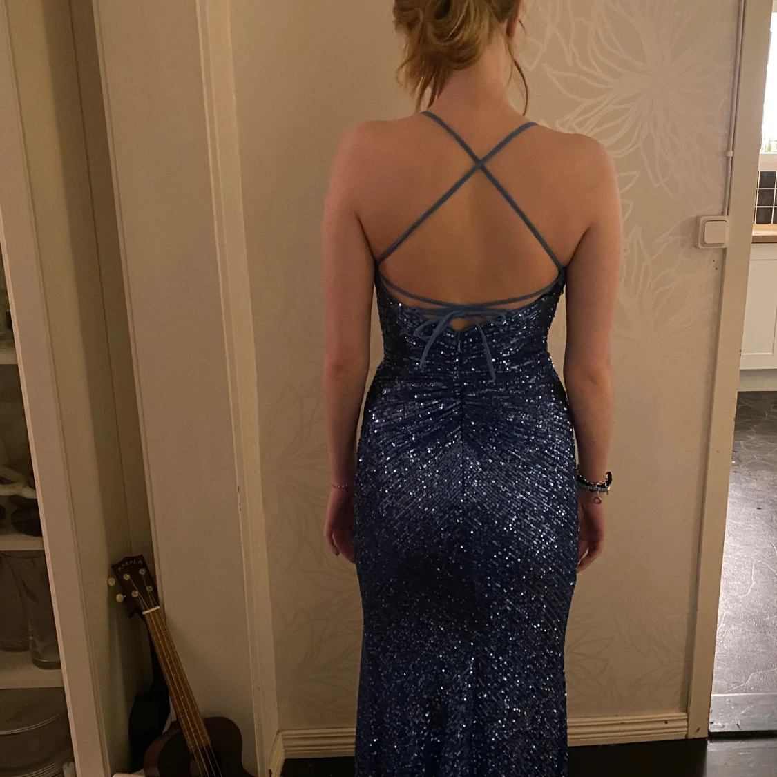 Glittrig blå balklänning🩵 Klänningen är köpt här på plick men aldrig använd av mig. Den har använts vid ett annat tillfälle. Klänningen är i storlek 36 och från mascara london. Personen på bild är 170 cm. Nypris är ca 2500kr. Vid frågor eller funderingar är det bara att skriva. Priset kan diskuteras💕