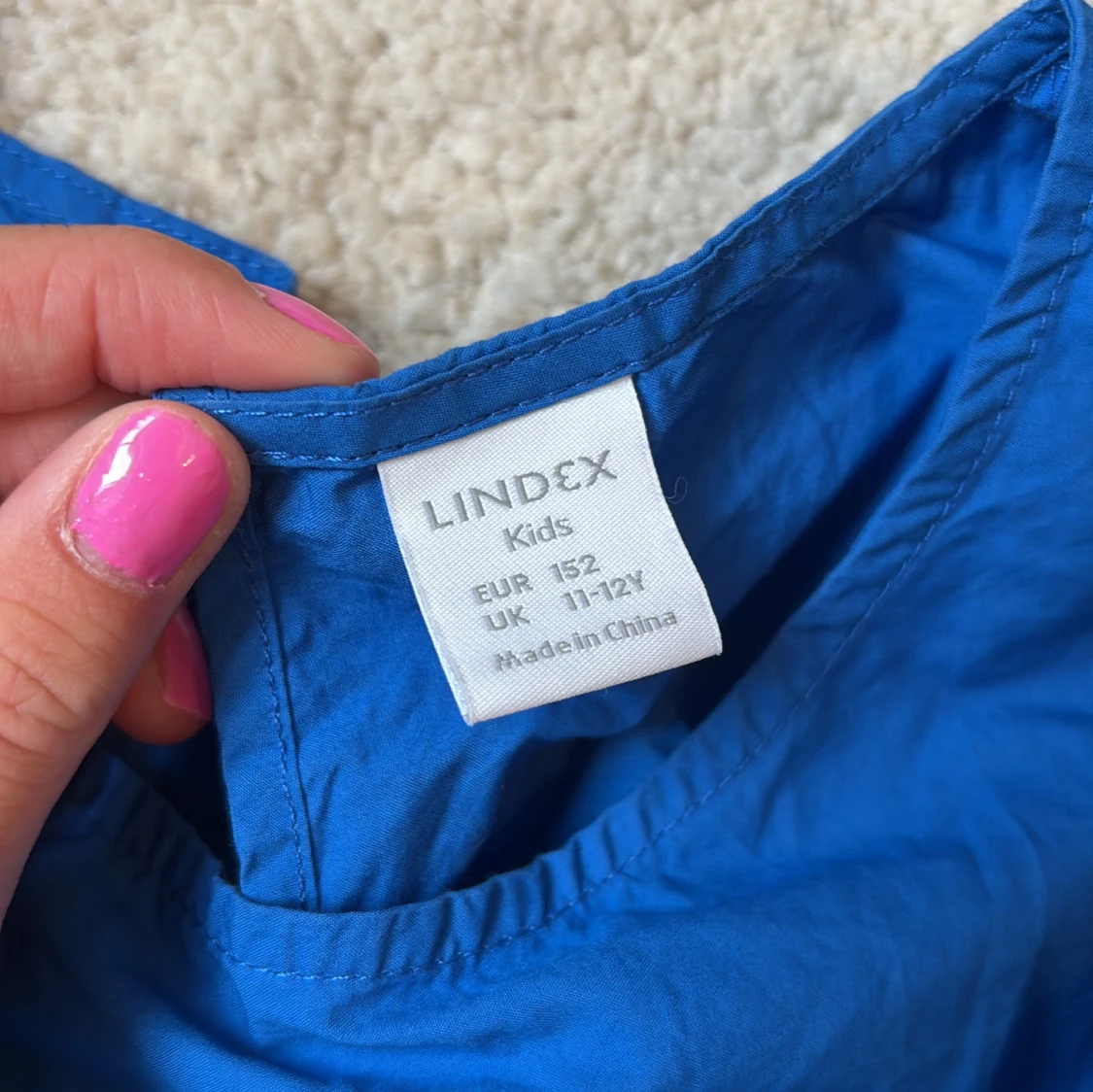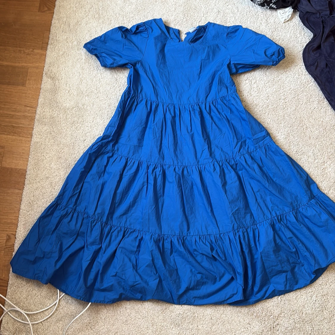 Supersöt blå klänning från Lindex med volanger och kort ärm. Klänningen har en luftig och skön passform! Helt oanvänd!💙