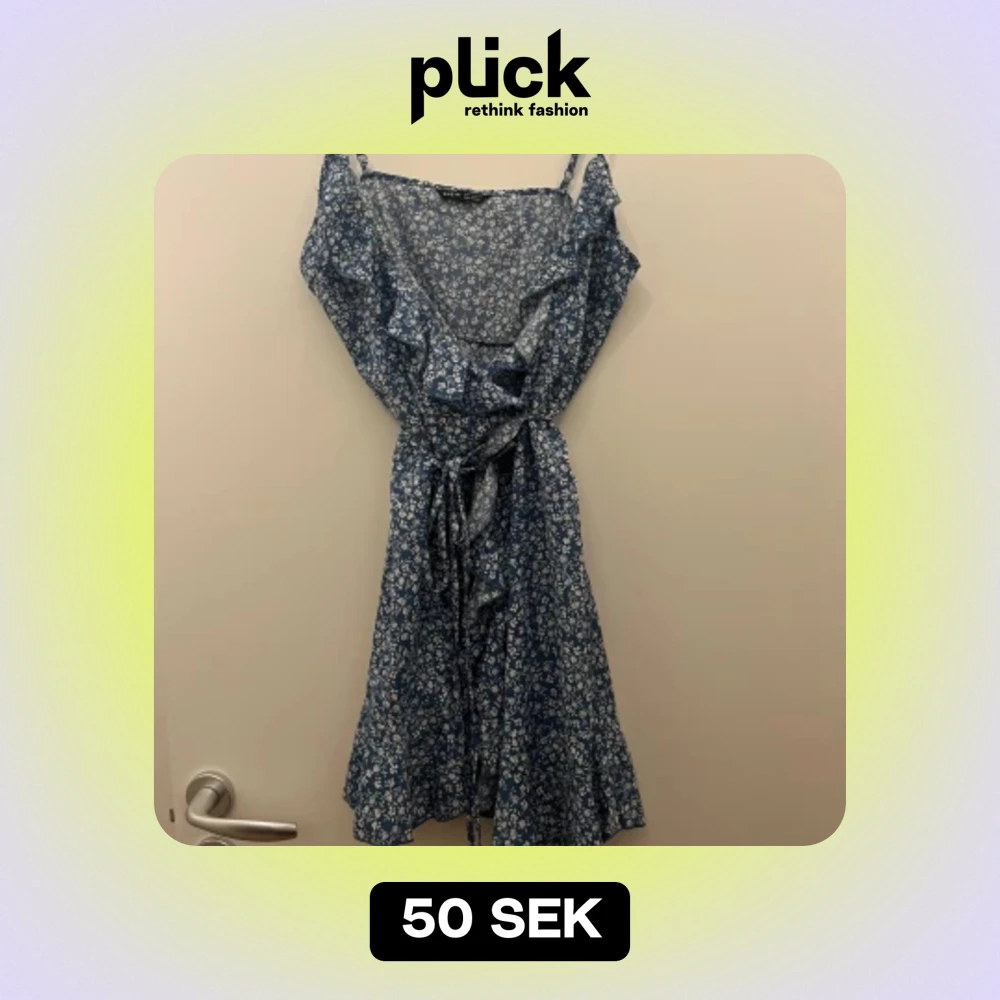 Fin blå klänning från SHEIN. Sitter superfint på men har tyvärr blivit för stor för mig. Omlottklänning som man knyter runt och justerbara band över axlarna. Storlek M men passar nog även S.