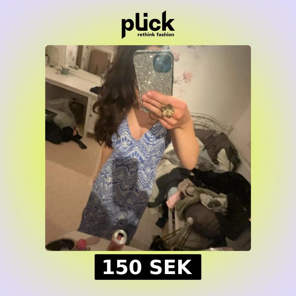 Säljer en snygg blåmönstrad långklänning med v-ringning. Klänningen har små slitsar på båda sidorna. Perfekt till sommaren💞