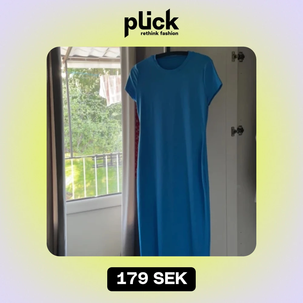 Testad en gång! Lång klänning och väldigt stretchig i en super fin blå färg! Sitter mot kroppen! Storlek M, men kan passa en L då den är väldigt stretchig. Säljer den då den är lite för stor för mig