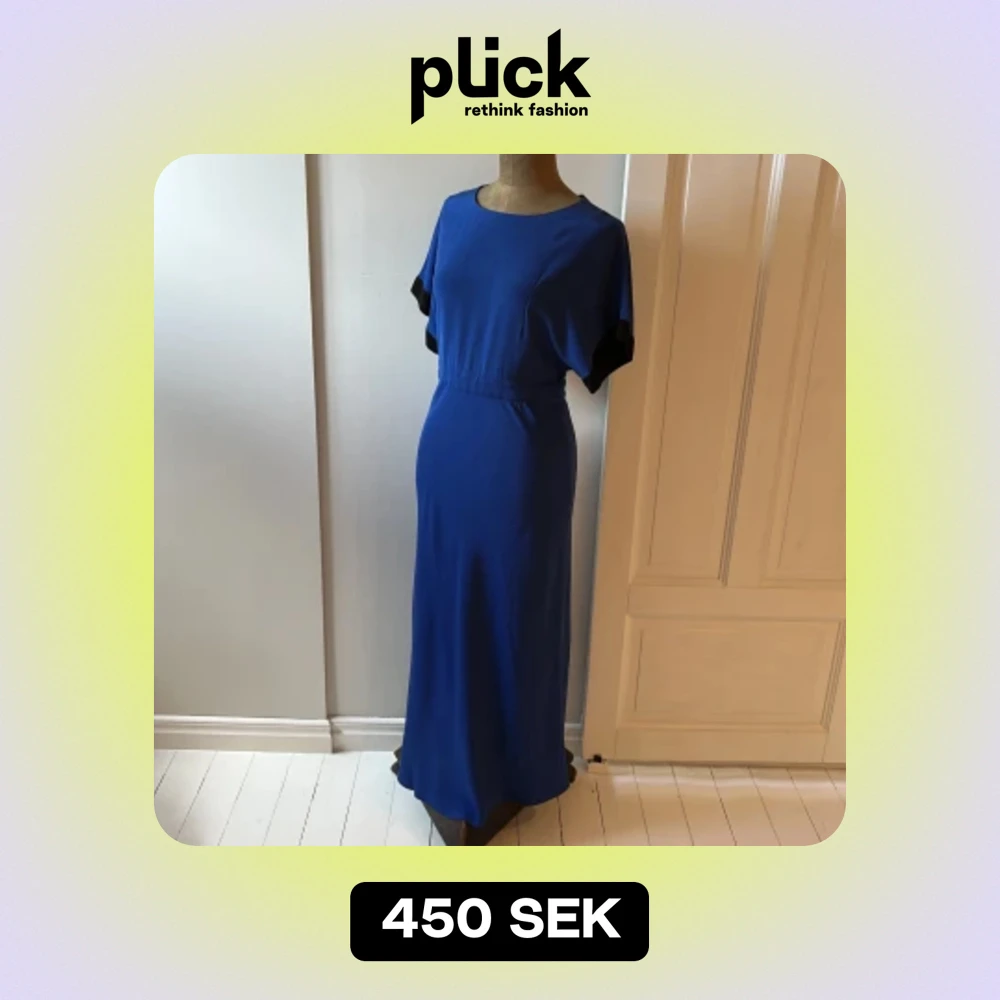Säljer en snygg djupblå lång klänning från & Other Stories. Korta ärmar med svarta detaljer och en dragkedja i ryggen. Den är tillverkad av 100% viskos vilket ger ett fint fall och är skön att bära. Perfekt för festliga tillfällen eller en middag! 💙