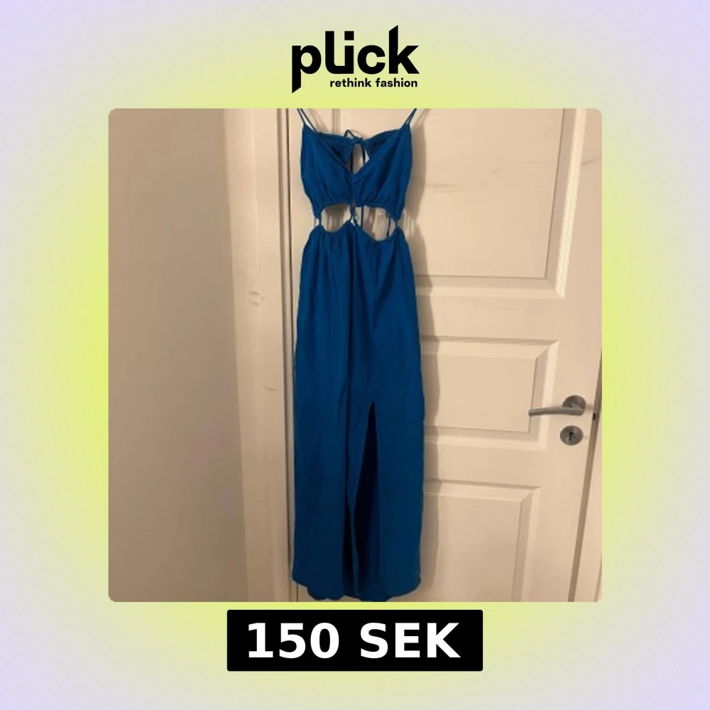 Supersnygg blå somrig långklänning från Zara i linne. Klänningen har smala axelband, cut-outs i midjan, slits framtill och öppen rygg med korsknytning. Den är helt oanvänd med prislapp på, den är i storlek M och kostade ca 350kr ny men säljer den för 150kr