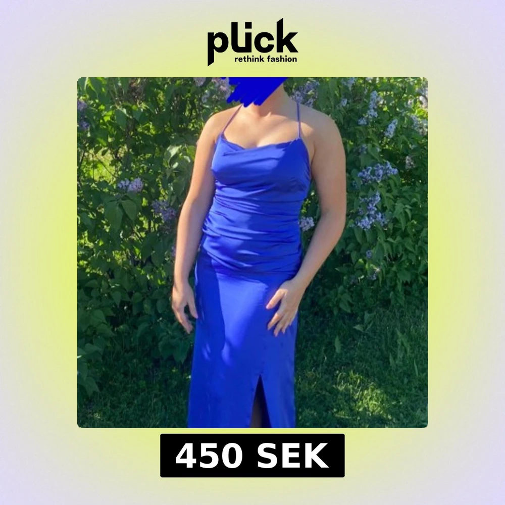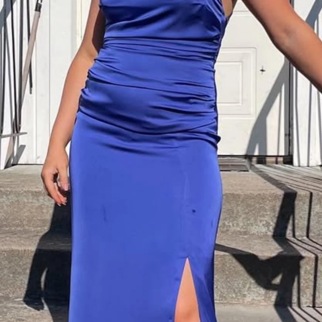 Elegant blå långklänning med en stilren slits framtill och snörning i ryggen. Klänningen har en smickrande passform och är perfekt för speciella tillfällen. Jag är 160cm!