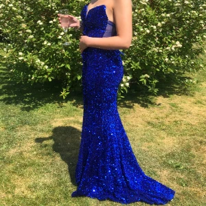 Balklänning som endast är använd en gång. Köpt på proms and wedding, uppsydd efter mig som var 165 i klackar. Den är stretchig, storlek xs💕