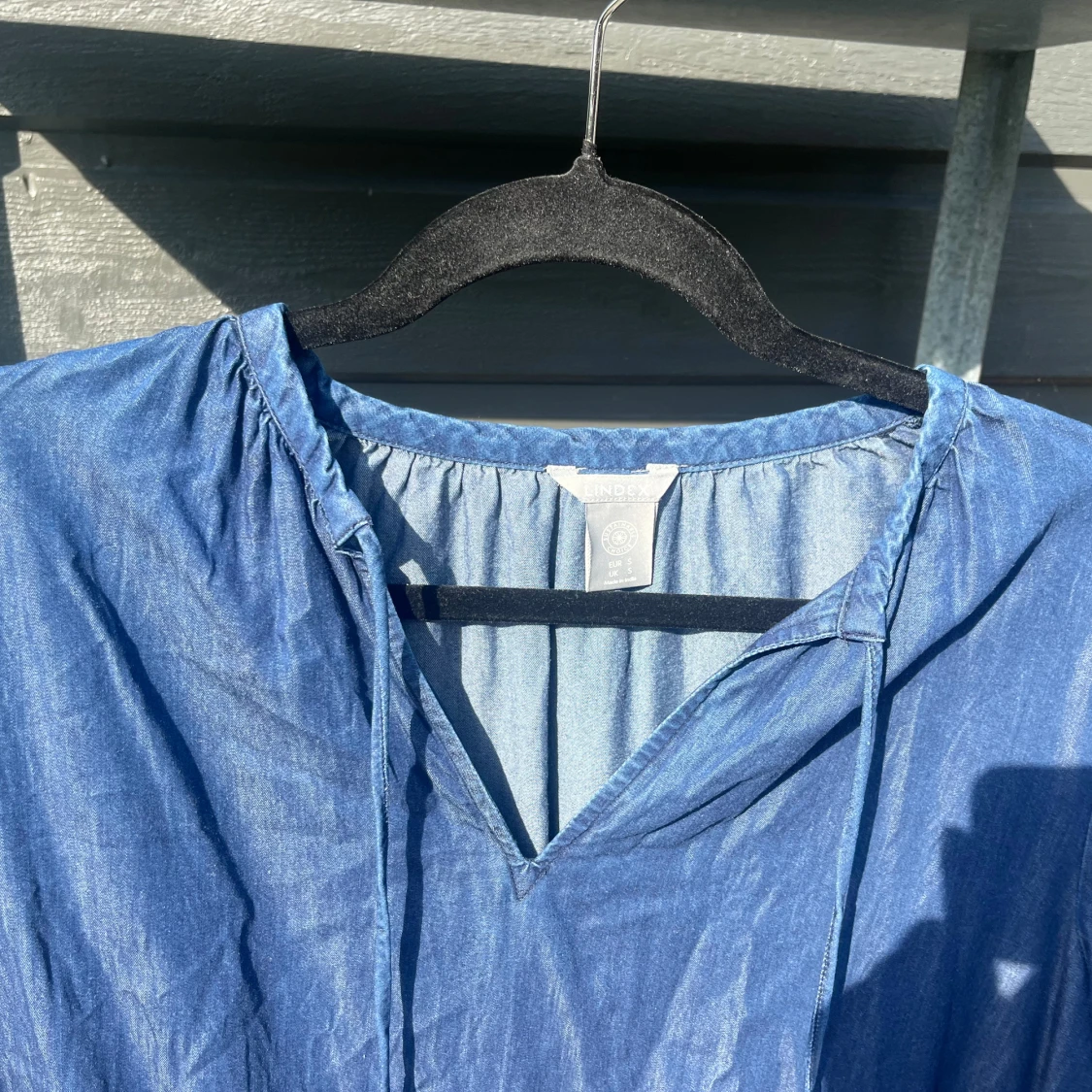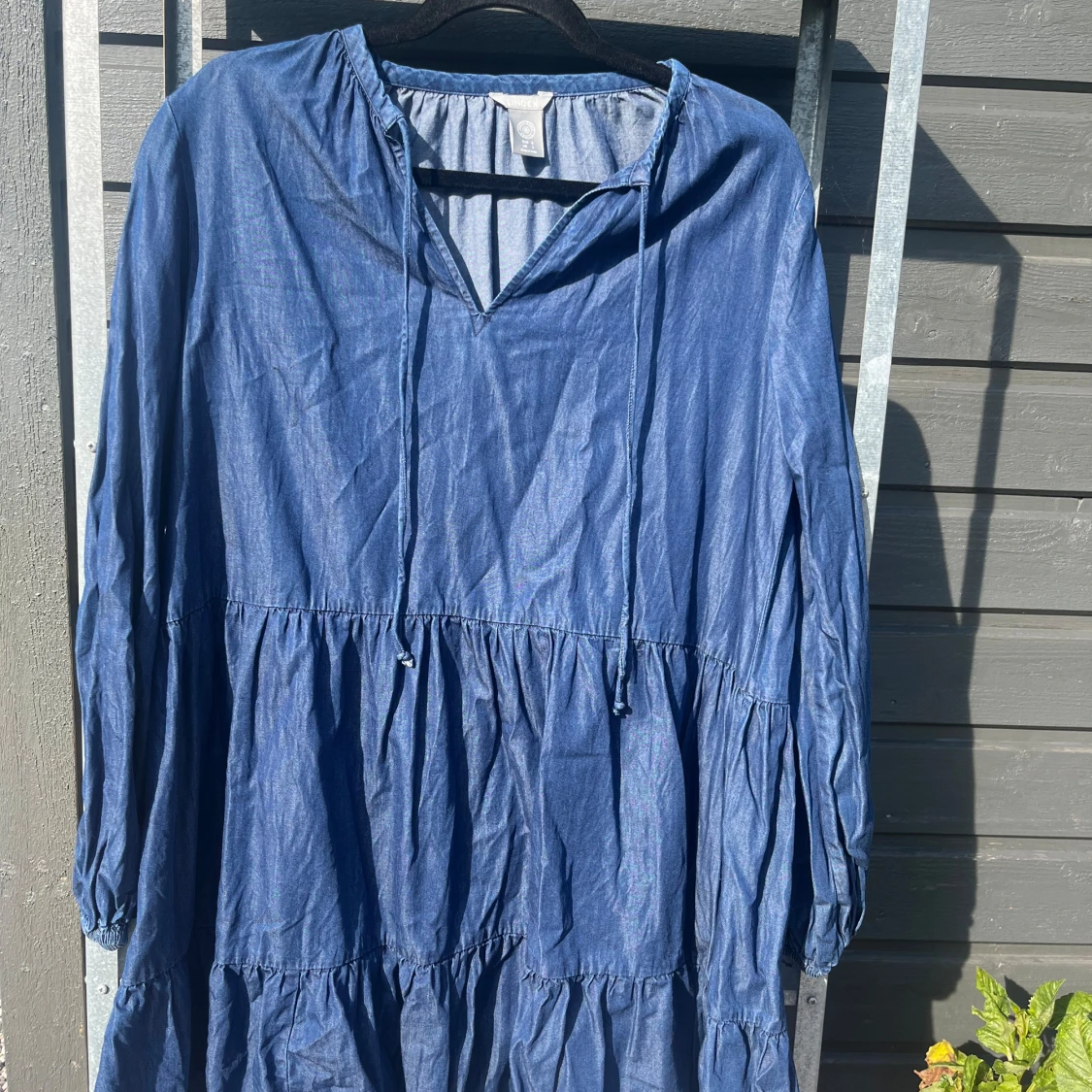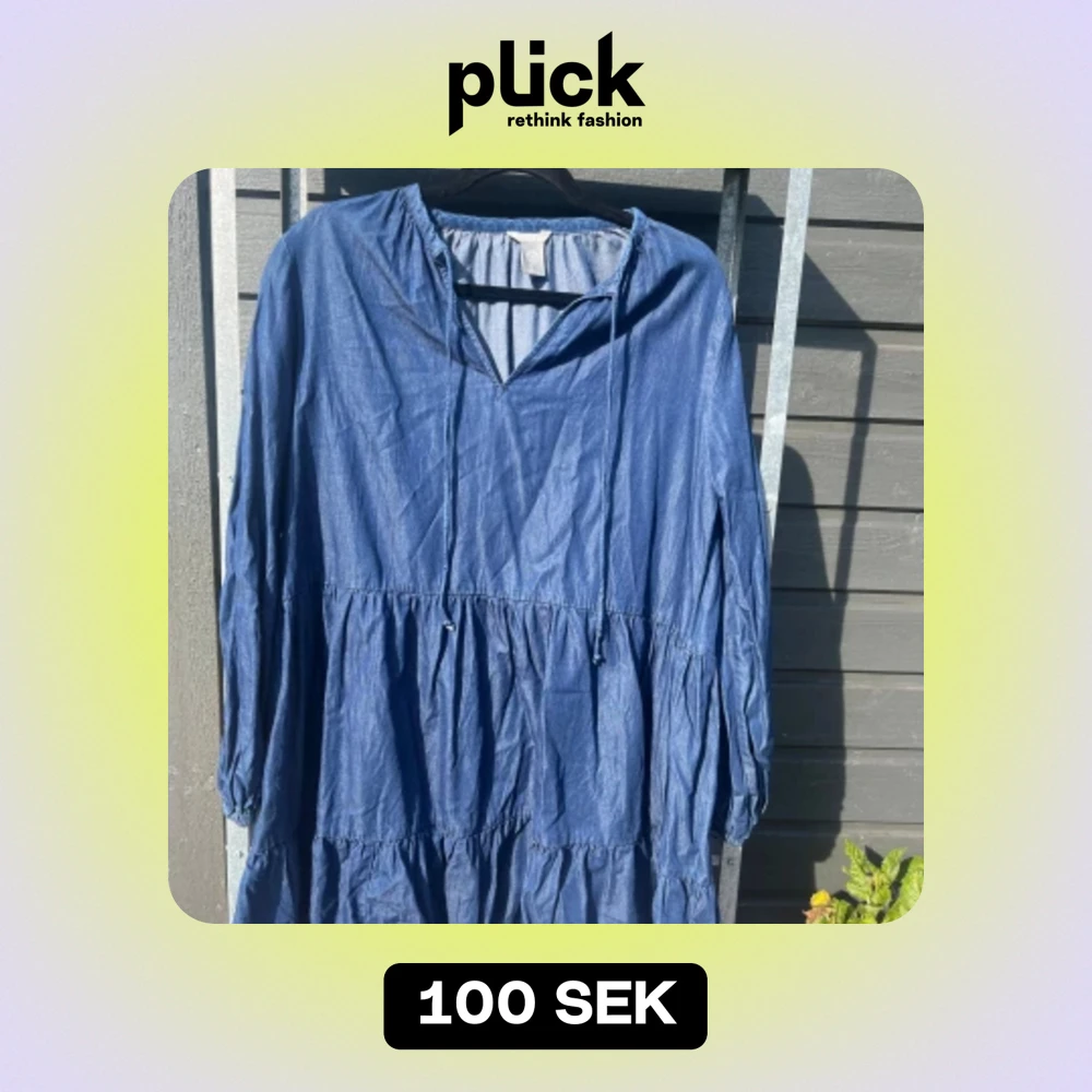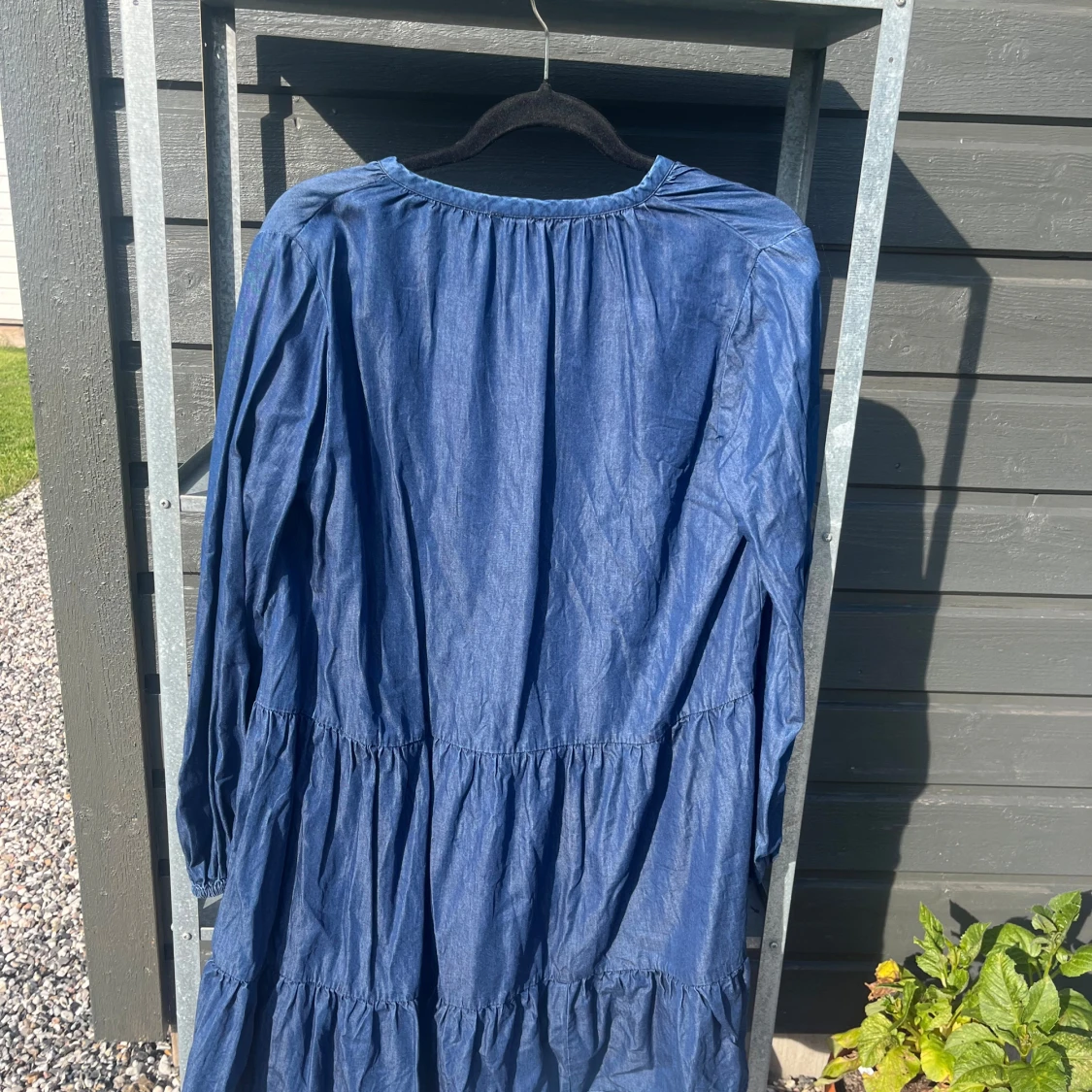 Blå Jeansklänning med volang nertill och med knytning! Strl S