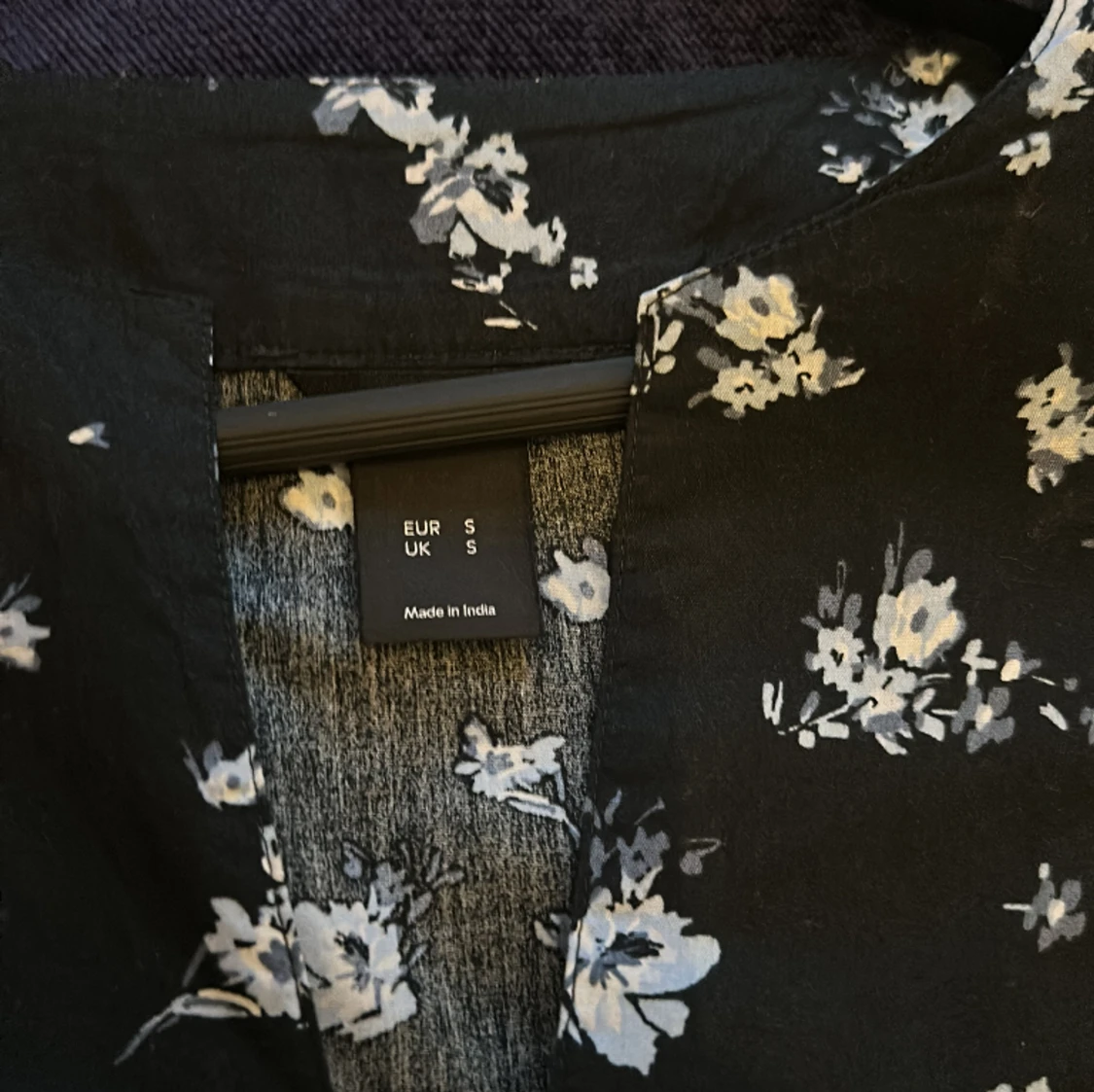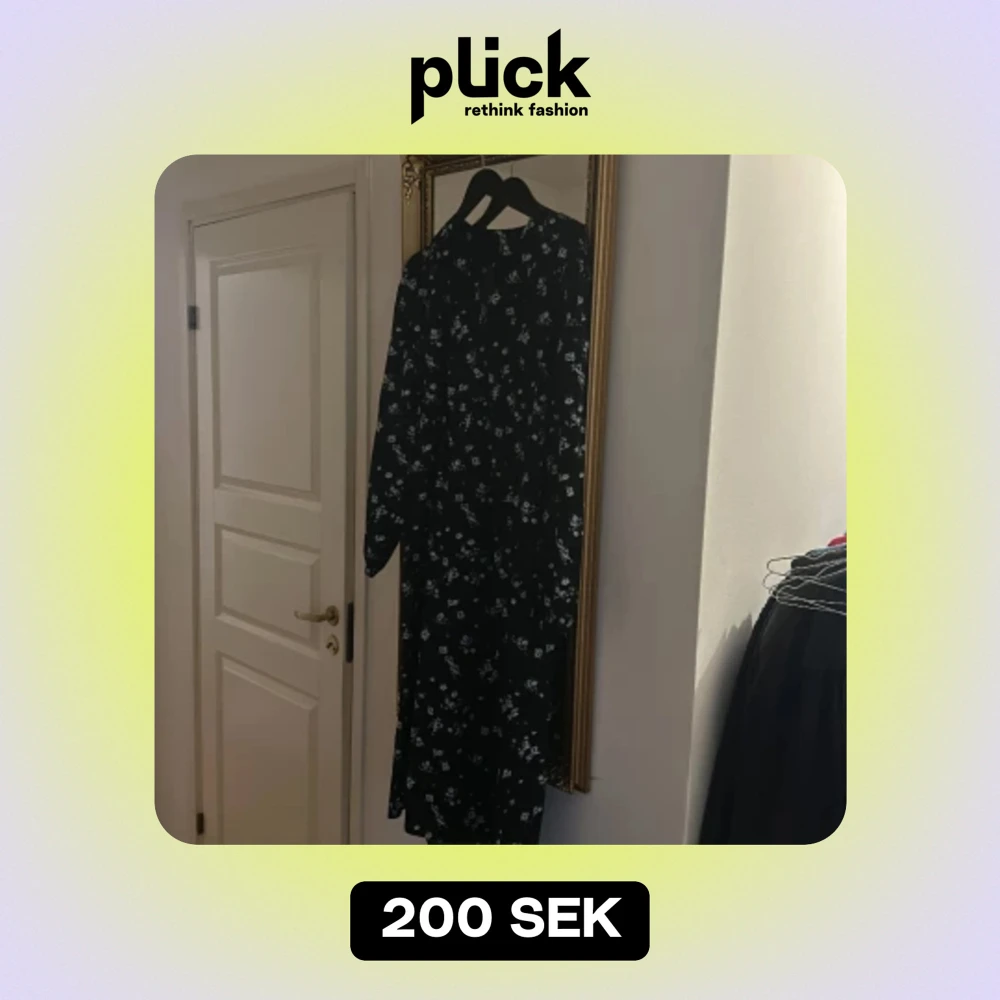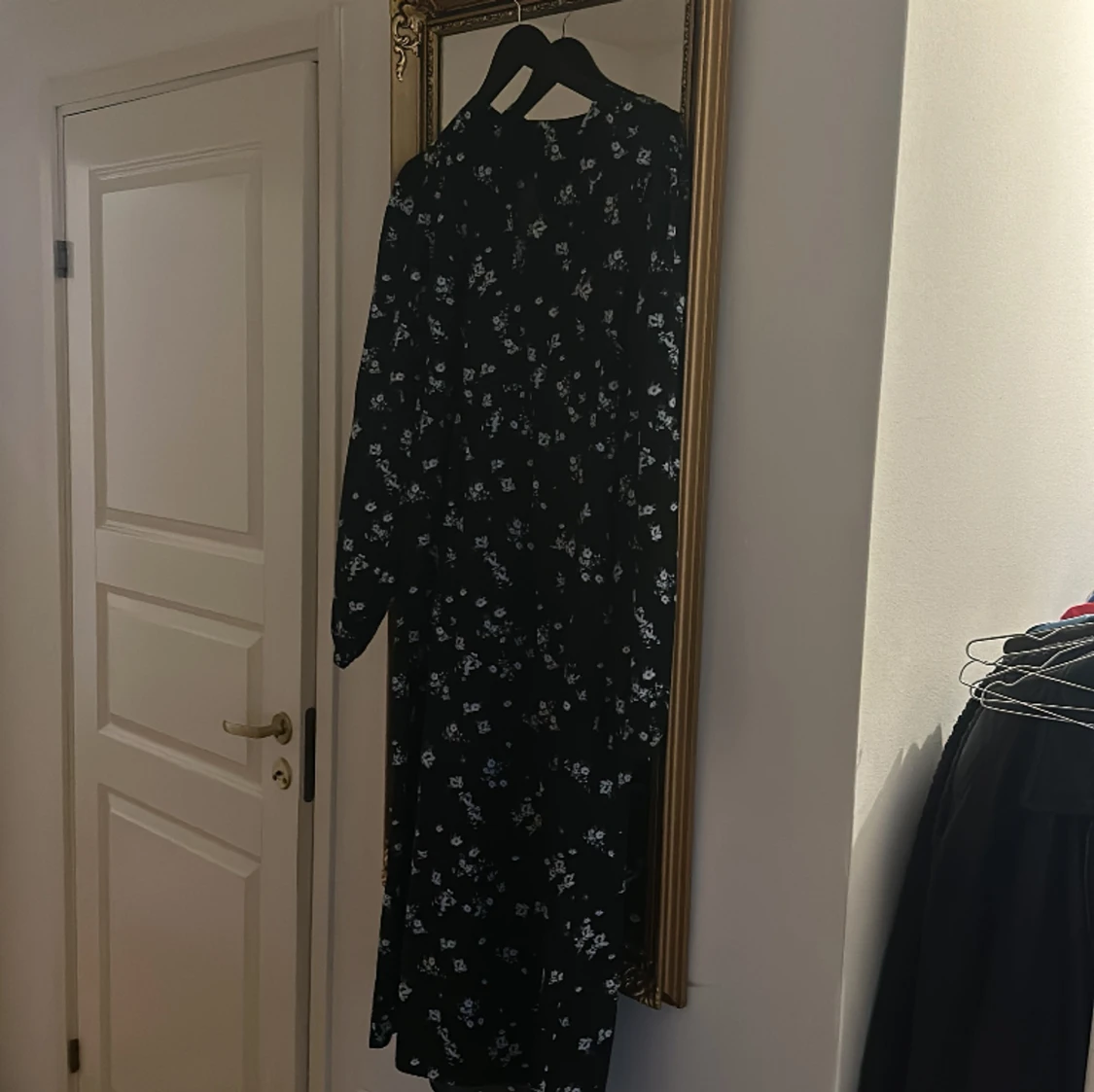 Lång klänning med sött blomsterprint i blått,ljusblått och vitt