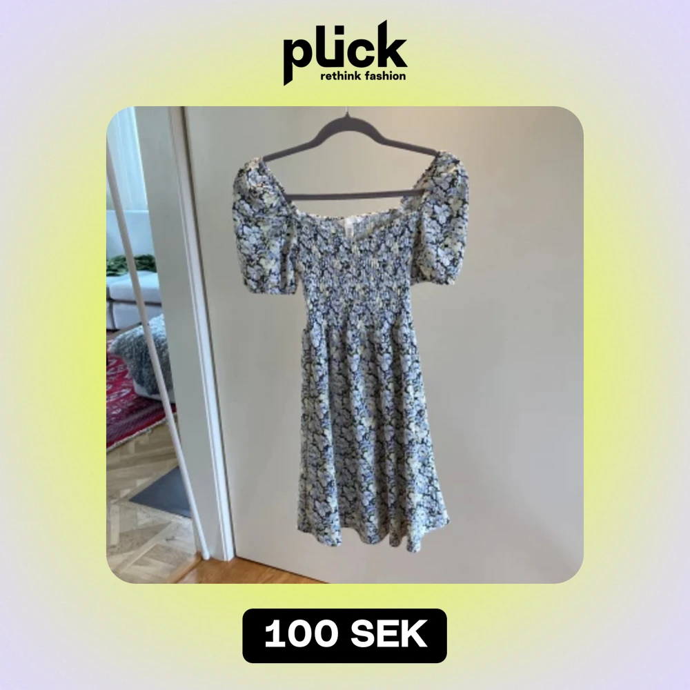 Fin blommig klänning från H&M i storlek xs med rynkad överdel. Nyskick, använd två gånger
