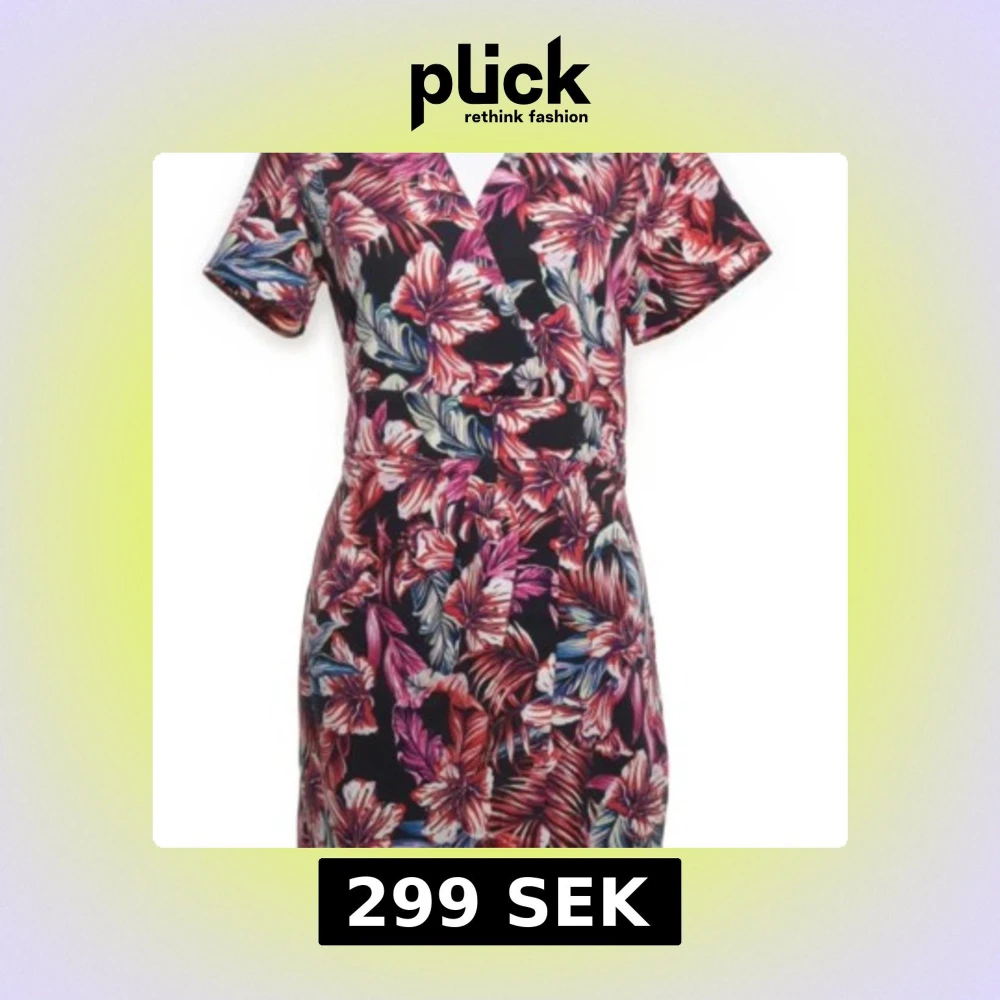 Snygg blommig klänning från Morgan med korta ärmar och v-ringad design. Klänningen har ett färgglatt mönster i rosa, blått och vitt på en mörk bakgrund. Perfekt för en somrig look! (Material etiketten saknas, men 99% sannolikhet är det viscose.