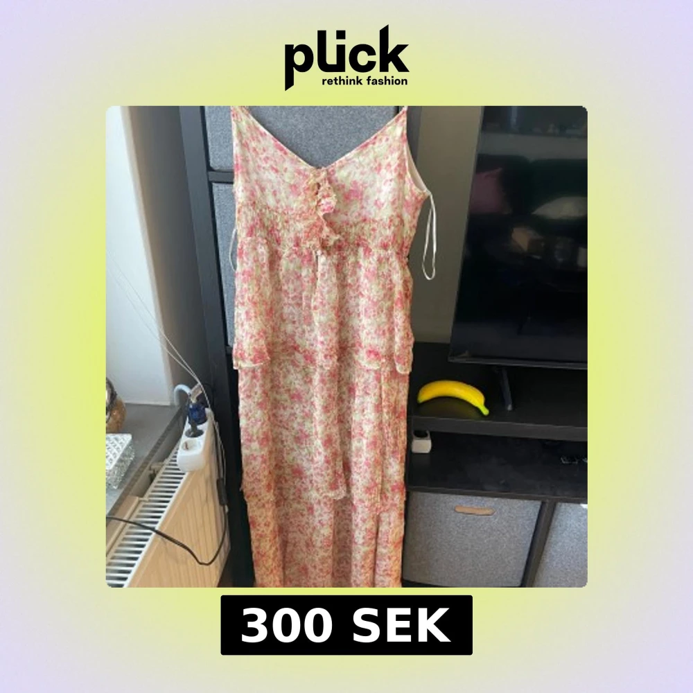 Blommig långklänning från Massimo Dutti. Klänningen är ärmlös med smala axelband och har en vacker volangdetalj.