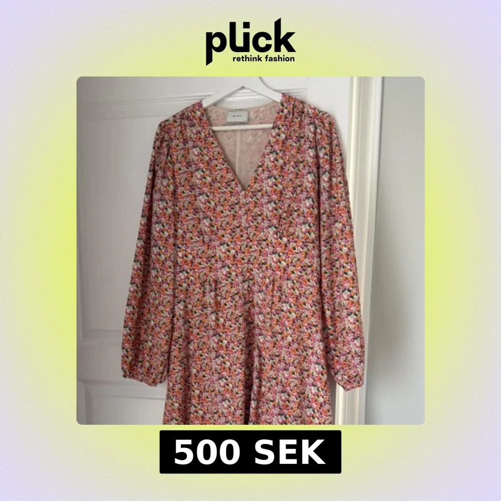 Säljer en färgglad långklänning från Neo Noir med blommigt mönster i orange, lila och grönt. Klänningen har v-ringning och långa ärmar, perfekt för vår och sommar. Materialet känns lätt och luftigt.