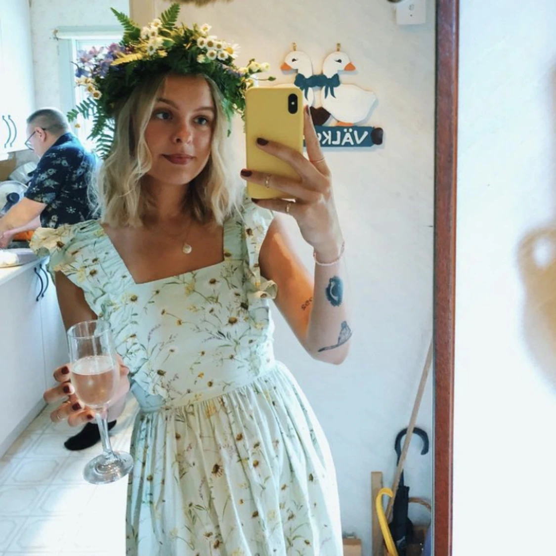 En superfin sommarklänning med knyte i ryggen så man jag skjutera den själv utifrån byststorlek, sparsamt använd max 3 gånger!