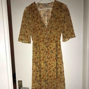 Gul blommig klämning i storlek M, något liten över bysten. Använd endast 3 gånger .