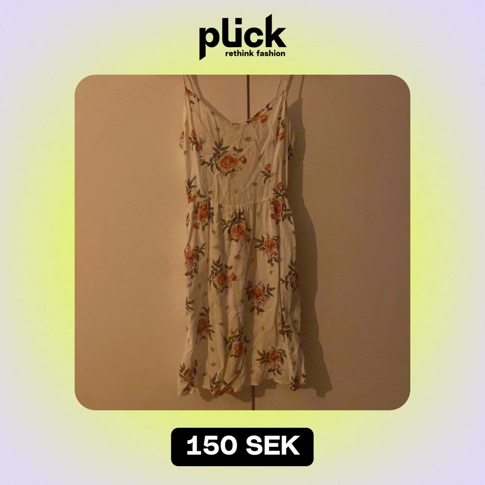 söt blommig klänning från HM i storlek XS🫶🏻. har en closeup på mönstret på tredje sliden! den har justerbara axelband. skriv om du har frågor❤️