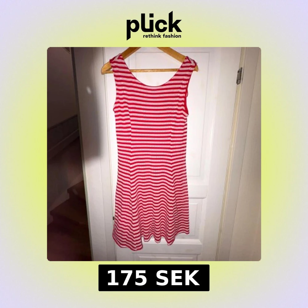 Snygg ärmlös klänning från Bondelid med röda och vita horisontella ränder. Fantastisk kvalitet! Modellen är kort och har en rund halsringning. Perfekt för varma dagar och enkel att styla med sneakers eller sandaler.