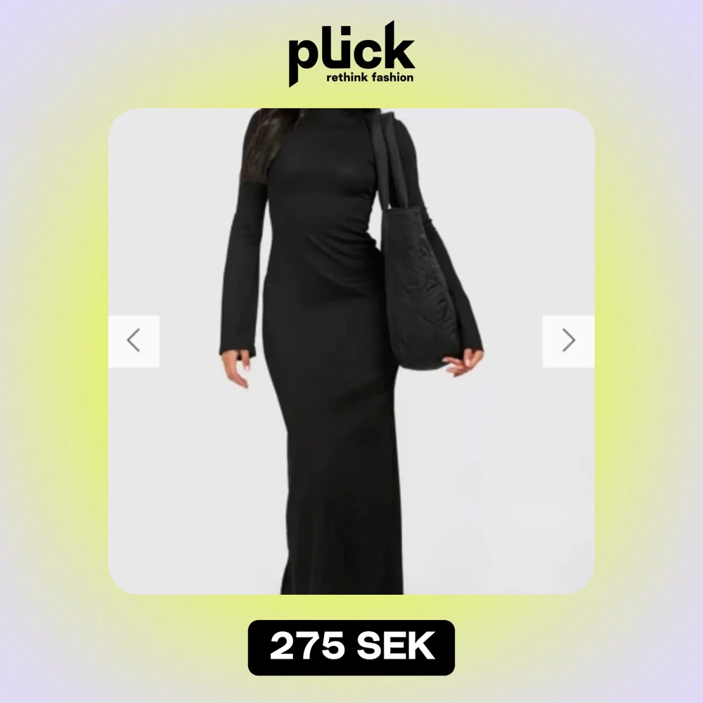 En ribbad lång svart slim klänning med lite större ärmar. Passade inte mig riktigt och därför finns den nu på plock. Helt ny. Bara testad och prislappen finns även kvar. Köpte två par. En i storlek 38 och en i 40 (S/M)