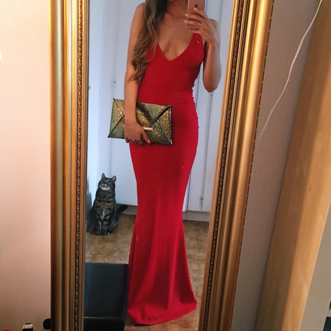 Röd, tight mermaidklänning! Stretchig och anpassar sig efter kroppen, sitter jättebra. Klänningen har djup rygg. Köparen står för frakten