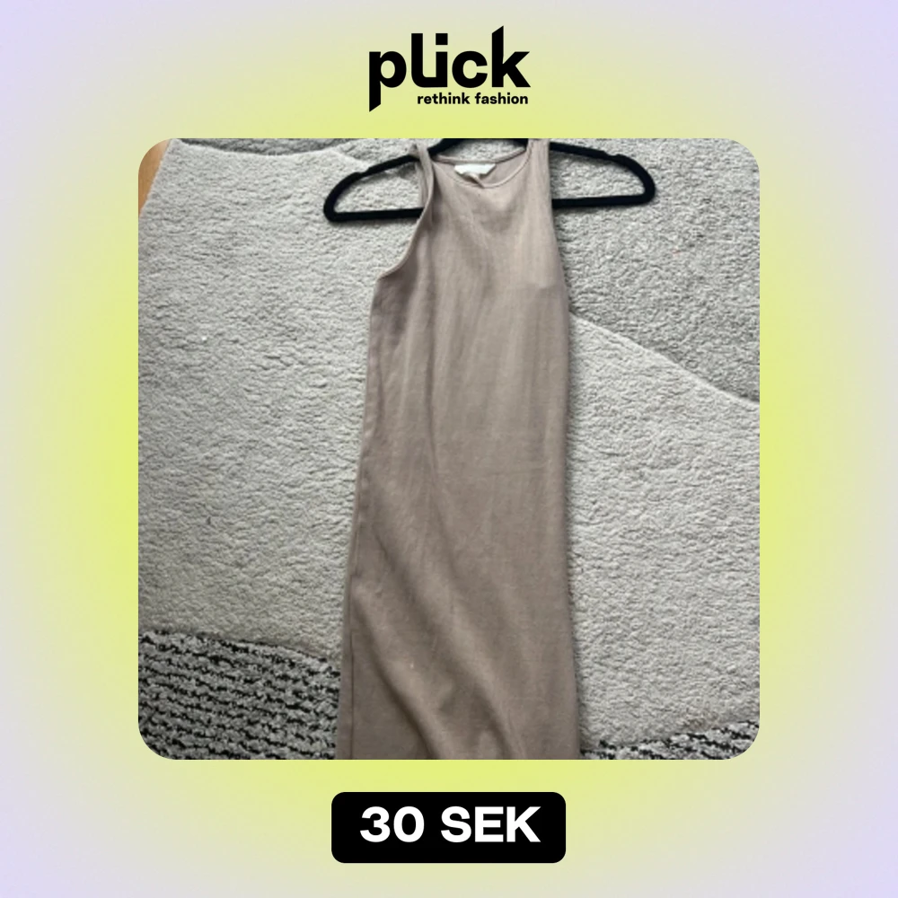 Den är 77cm lång och den är elastisk så den kan bli ganska bred. Det är en lång sommarklänning i färgen beige. Den är i super bra skick.