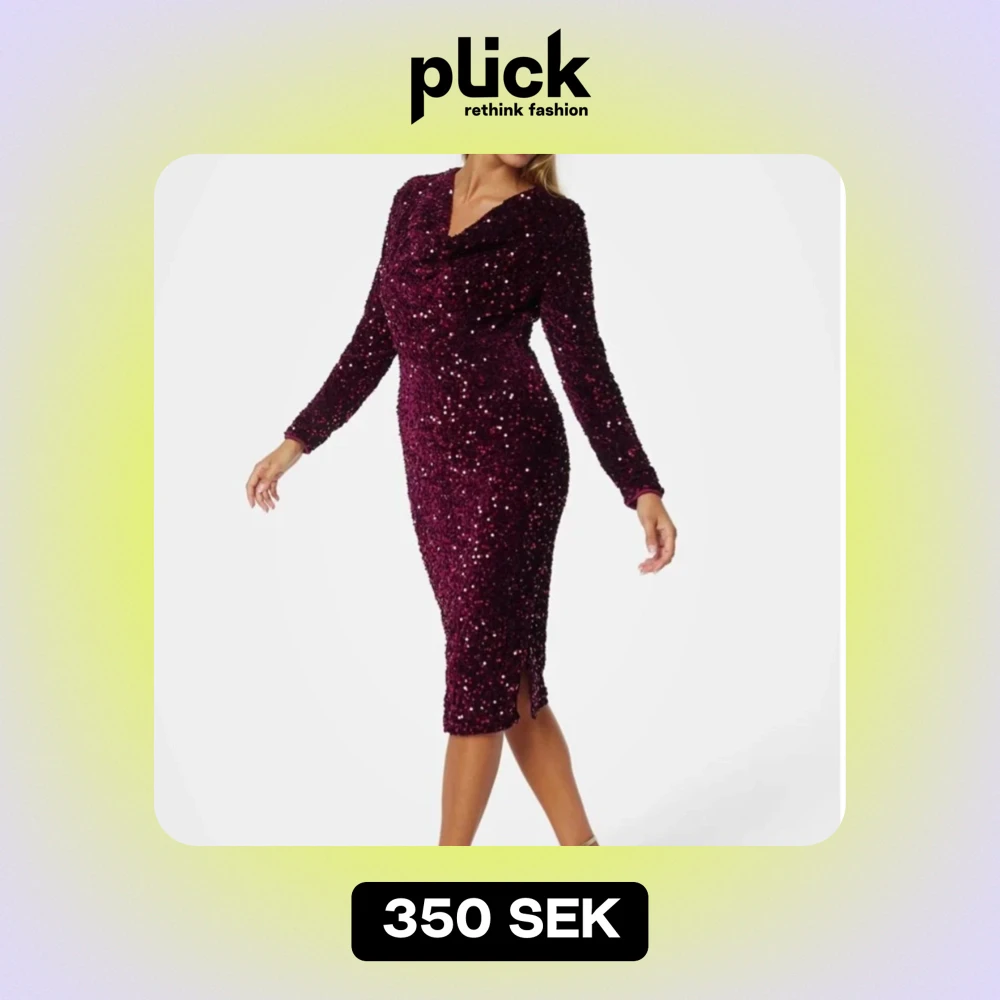 Snygg vinröd klänning med paljetter som ger en snygg glittrig look. Klänningen har långa ärmar och en elegant slits. Perfekt för festliga tillfällen. Använd i ca 4-5 timmar och köpt för 499kr på Bubbleroom ☺️