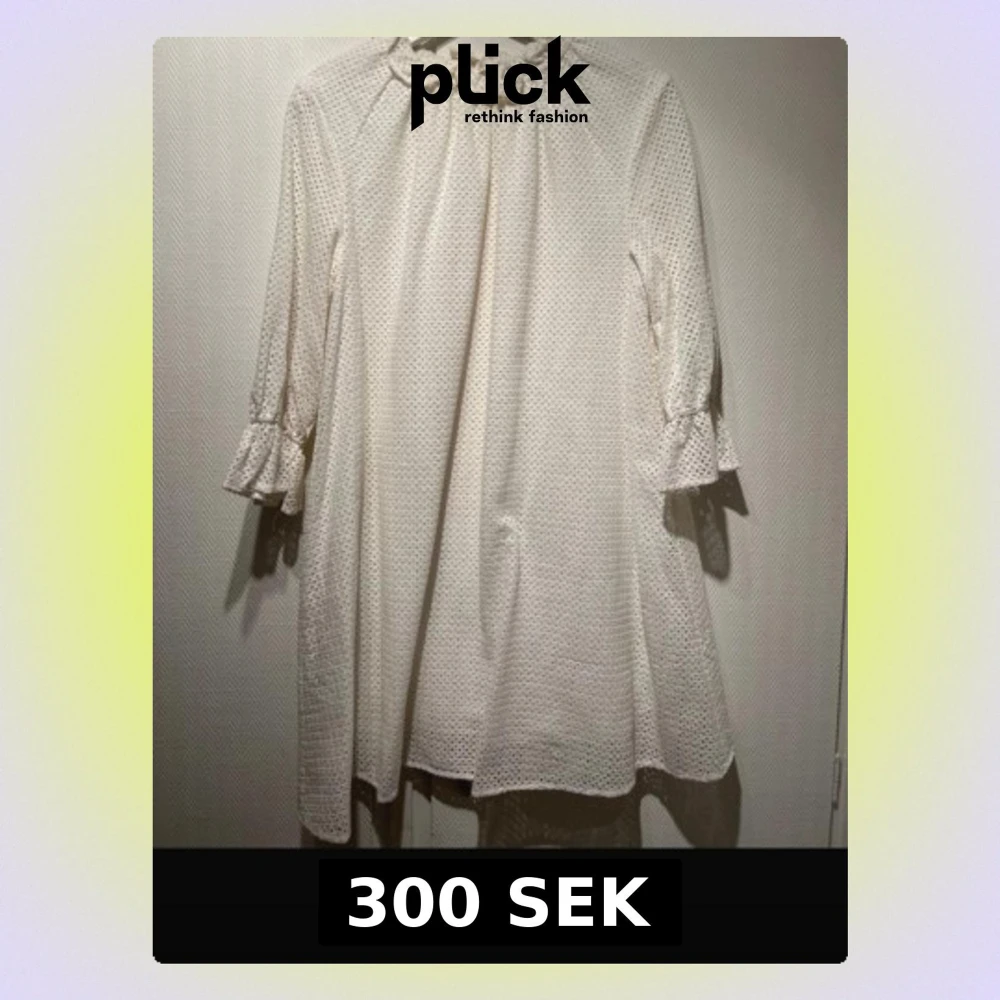 Säljer en söt vit kortklänning från Carin Wester i storlek 38. Klänningen har broderade detaljer, volang vid ärmslut och en rund krage med knyt. Materialet är bomull och klänningen har trekvartsärm. Perfekt för dig som gillar romantisk stil.