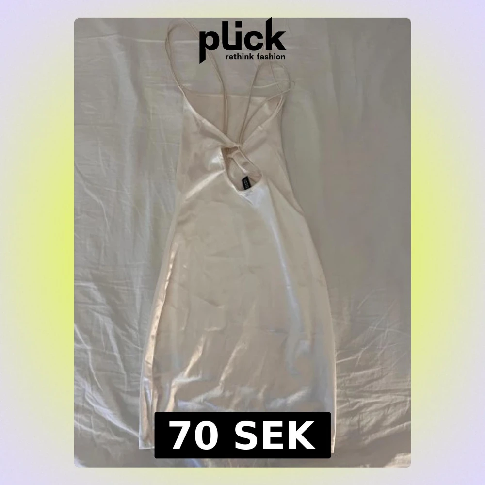 Snygg kort klänning i champagnefärgad satin från H&M. Klänningen har tunna axelband, öppen rygg med snygg snörning och en figurnära passform. Perfekt för dig som vill sticka ut med en elegant och trendig look.
