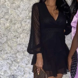 Stilren svart klänning men volanger. Funkar till de flesta tillfällen då man ska vara uppklädd.