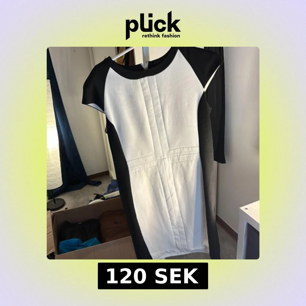 Snygg svart och vit klänning från Zara Basic med korta ärmar och en stilren design. Klänningen har en dragkedja i ryggen och är perfekt för en elegant look.