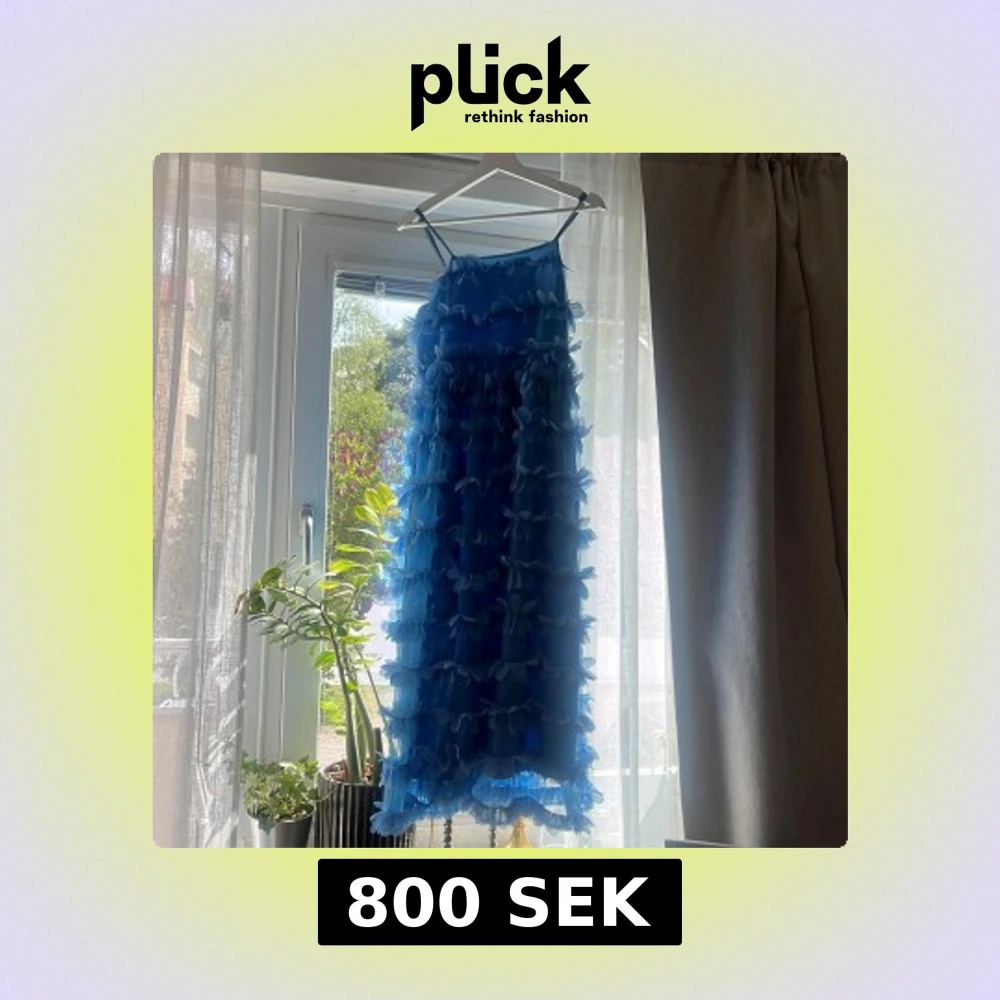 Säljer en blå axelbandsklänning från YAS med volanger över hela klänningen. Klänningen är vadlång och har en luftig passform med tunna axelband. Perfekt för sommarens tillfällen när du vill sticka ut med en unik look. Dock ser man att den blivit lite defekt på ryggen efter en sittning, vet inte varför den är sliten just det men syns på bild 5.
