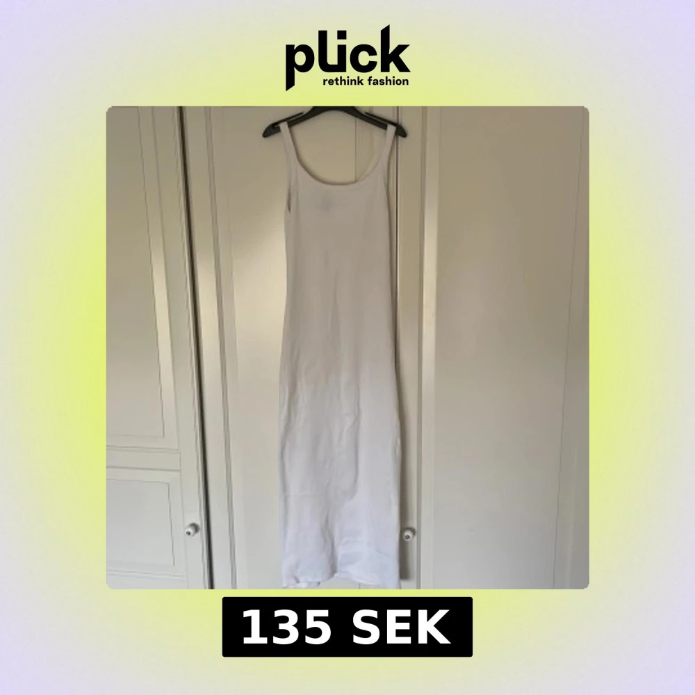Vit lång klänning Ribbad, jätte fin!❤️ I storlek S, kommer ej till användning därför säljer jag!