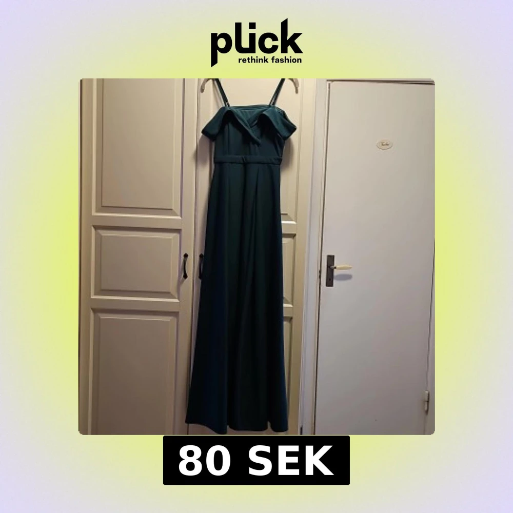 Mörkgrön axelbandsklänning från SHEIN i lång modell. Klänningen har smala axelband, offshoulder-detalj och markerad midja. Har endast användas på min bal❤️